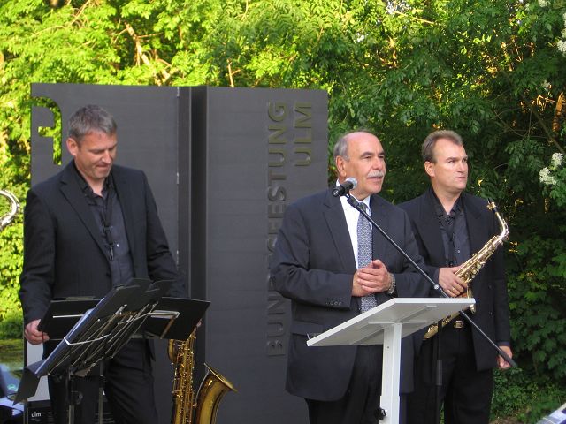 konzert_dummyDa staunten die Spaziergänger nicht schlecht, die hier sonst nahezu ungestört mit ihrem Hund Gassi gehen. Mehrere hundert Schaulustige, aber auch die dem Anlass entsprechende Prominenz hatten sich am Fuße der Wilhelmsburg versammelt, um gemeinsam den neu geschaffenen Festungsweg rund um die Hauptumwallung der Bundesfestung zu eröffnen. Neben den Oberbürgermeistern der beiden Donaustädte, Ivo Gönner und Gerold Noerenberg, waren auch dessen Vorgängerin und heutige bayerische Justizministerin Beate Merk sowie die baden-württembergische Sozialministerin Monika Stolz gekommen, um den eigentlichen Auftakt des Jubiläums '150 Jahre Bundesfestung' mit zu feiern.